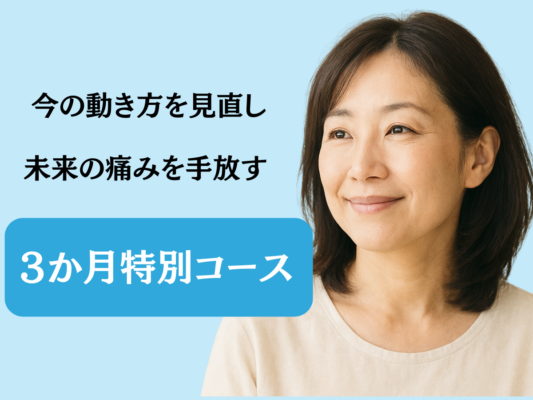 施術だけに頼るのではなく、“整える → 動きを変える → 定着させる”ための3ヶ月。